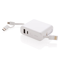 5.000 mAh zakformaat powerbank met geïntegreerde kabels