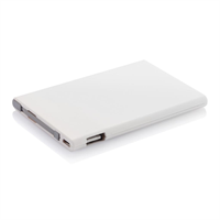 Compacte en mobiele ABS oplader met 2.500 mAh lithium batterij. Output 5V/1A en input 5V/800mA. Inclusief micro USB kabel.