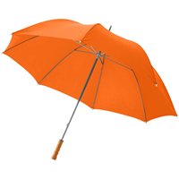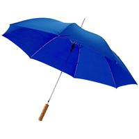 Automatische paraplu met metalen schacht en baleinen en houten handvat. Polyester.