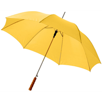 Automatische paraplu met metalen schacht en baleinen en houten handvat. Polyester.