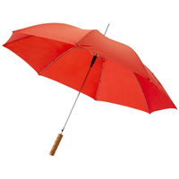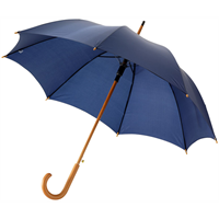 Automatische paraplu met metalen schacht en baleinen en houten handvat. Polyester.