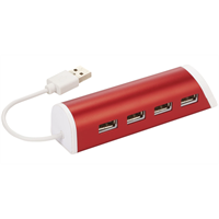 Aluminium 2.0 USB-hub. De kant van de hub strekt zich uit tot dubbel als een telefoonstandaard. De hub kan datum en kracht overdragen. Compatibel met elke USB-poort. Kabellengte is 13 mm. Aluminium.