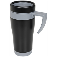 Geïsoleerde beker met schroefdop en schuiflipje. Inhoud 400 ml. Roestvrijstaal, Plastic.