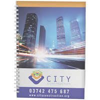 Spiraal A4 notitieboek. Dit notitieboek heeft een witte of zwarte spiraal. Verkrijgbaar in verschillende maten. Bevat een omslag van glanskarton (250 g/m2) en (80 g/m2) blanco papier. Standaard geleverd met 50 vellen, ook verkrijgbaar met 80 vellen. Decor