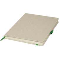 Formaat canvas notitieboekje met gekleurde elastieksluiting en paginalint. Een elastische penlus en 80 pagina’s van 70 gram met gelinieerd papier. Katoen.