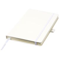 A5 (14,2 cm x 21,4 cm) notitieboek (karton bekleed met leerpapier) met elastische band, leeslint, pennenlus en accordeon-achterzak. Inclusief 96 vellen gelinieerd crèmepapier in 80 g/m2 en wordt aangeboden in een Journalbook witte hoes. Leerpapier.