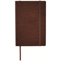 Leren notitieboek in A5 formaat met zachte kaft en elastische sluiting en bladwijzer in bijpassende kleur. 96 g/m2, 80 vellen crèmekleurig lijntjespapier. Verpakt in een hoes. PU Plastic.