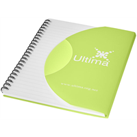 A6 notitieboek. Bevat 50 bladen (80g/m2) blanco papier. Bevat een 500 micron omslag van gekleurd polypropyleen met een afgeronde vorm. Decoratie is mogelijk op de omslag, binnenin de omslag en op elk blad. Notitieboek is verkrijgbaar in verschillende kleu