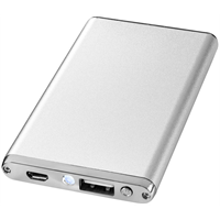 Powerbank heeft een capaciteit van 2200 mAh en levert voldoende energie voor het opladen van mobiele apparatuur. Geleverd met oplaadkabels in een witte kartonnen geschenkverpakking. Aluminium.