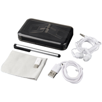 Wikkelbare 3-in-1 oplader-sleutelhanger heeft een USB type A-aansluiting, een snelle type C-kabel en een 2-in-1 compatibele stekker voor zowel iOS- en Android-apparaten. De kabels kunnen om het apparaat worden gewikkeld voor opslag. Geleverd met sleutelha