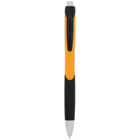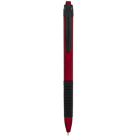 Balpen met metallic afwerking en rubberen grip. Blauwscrhrijvend. Plastic.