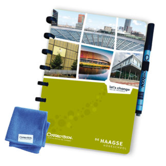 Correctbook is een nieuw professioneel schrift; een whiteboard in een schrift. Een Correctbook in A5 formaat met penhouder, 50 whiteboard pagina’s. Een binding waar alle pagina’s in en uit kunnen, inclusief een zwarte Correctmarker en Correctbook mini spons. Jouw aankoopt helpt een kind in nood leren schrijven. Gemaakt in Europa d.m.v. klimaatneutrale productie. Herbruikbaar – dat scheelt een hoop papier!