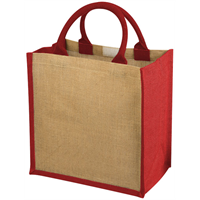 Draagtas met gelamineerd open hoofdvak en inzetstuk. Katoenen rolgrepen. Jute.