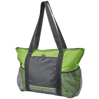 Met ritssluiting. Voorvak en twee zijvakken. Draaghoogte 30 cm. Geschikt voor 30 blikjes inclusief sleutellus aan de voorkant van de tas. 420D van Polyester, 210D van Polyester, PU Plastic.