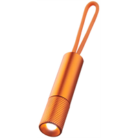 Wit LED sleutelhangerlampje met glow in the dark siliconenbandje in bijpassende kleur en aan/uit draaiknop. Batterijen inbegrepen. Aluminium.