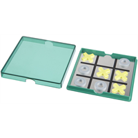 Tic tac toe spel in tweedelig speelbord met doorschijnend afneembare deksel. PP Plastic.