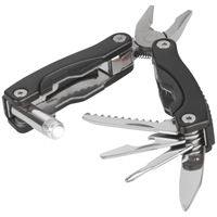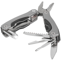 Met 8 functies. Bevat LED zaklamp. Wordt geleverd in een nylon etui met riemlus en klittenband sluiting. Inclusief batterijen. Aluminium.