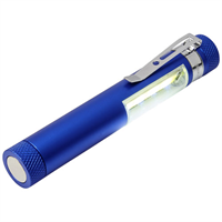 Handige aluminium COB-zaklamp met magneetvoet en zakclip. Werkt op 5x LR44-batterijen en produceert 42 lumen. Groot logo-decoratiegebied beschikbaar voor zowel tampondruk als lasergravure. Aluminium.