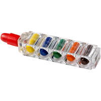 In 6 kleuren. Decoratie is niet mogelijk op de krijtjes zelf. Karton.