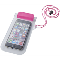 Met matte witte achterzijde transparant, doorzichtig touch scherm met ritssluiting en gekleurde flap met klittenbandsluiting. Inclusief nekkoord met trekkoord sluiting. PVC.