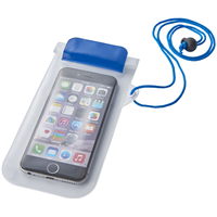 Met matte witte achterzijde transparant, doorzichtig touch scherm met ritssluiting en gekleurde flap met klittenbandsluiting. Inclusief nekkoord met trekkoord sluiting. PVC.
