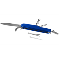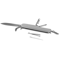 Met Philips kruiskop en platte schroevendraaier, flesopener, kurkentrekker, blikopener, briefopener, pincet, tandenstoker en mes. Inclusief mini sleutelring. ABS Plastic.